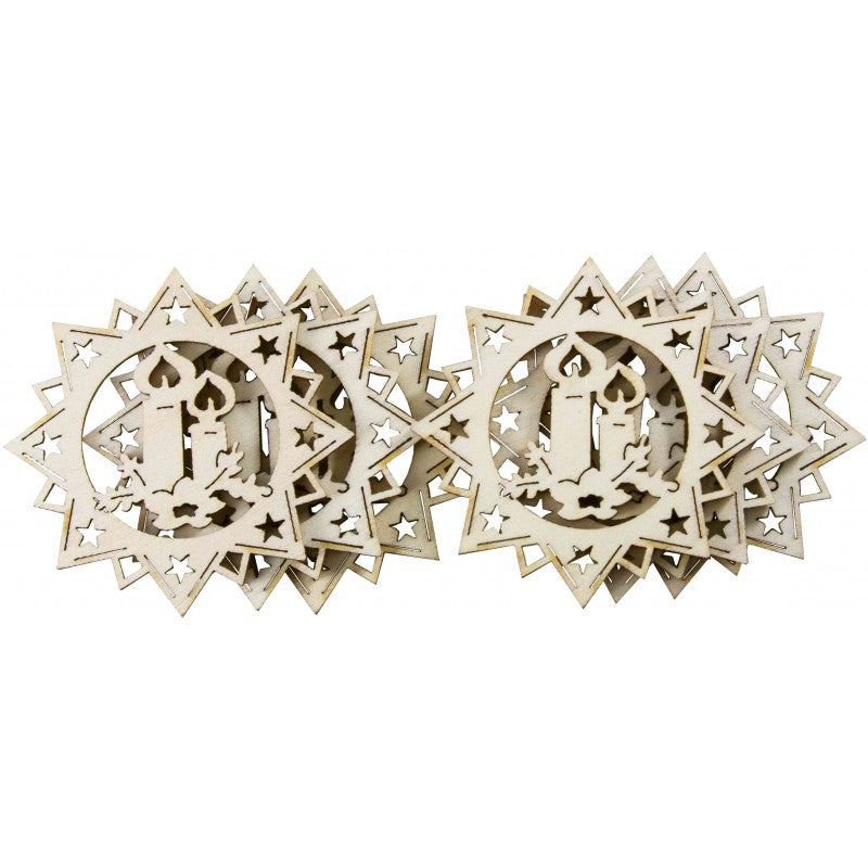Acest articol este un elemente decorative din lemn decupate in forma de stea cu lumanare, culoarea lemnului natural nefinisat ii permite sa fie vopsit, vopsit sau acoperit cu lipici si presarat cu sclipici, va puteti juca plin de imaginatie pentru artivitati creative, cum ar fi mozaic, facerea de carduri, semn sau realizarea de etichete.