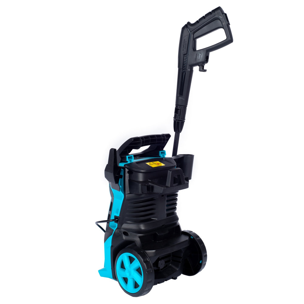 Aparat spalat cu presiune 110 bar 1400W curata obiecte de dimensiuni mari sau suprafete foarte murdare, rapid. Aparatul curata pavaje, mobilier de gradina, pereti dar si autoturisme, biciclete etc. Este usor de transportat indepartand cu succes mai multe tipuri de mizerie: praf, reziduuri, mucegaiuri, muschi sau noroi. Aparatul trebuie amplasat pe o suprafata stabila si neteda intr-un loc deschis si uscat.
