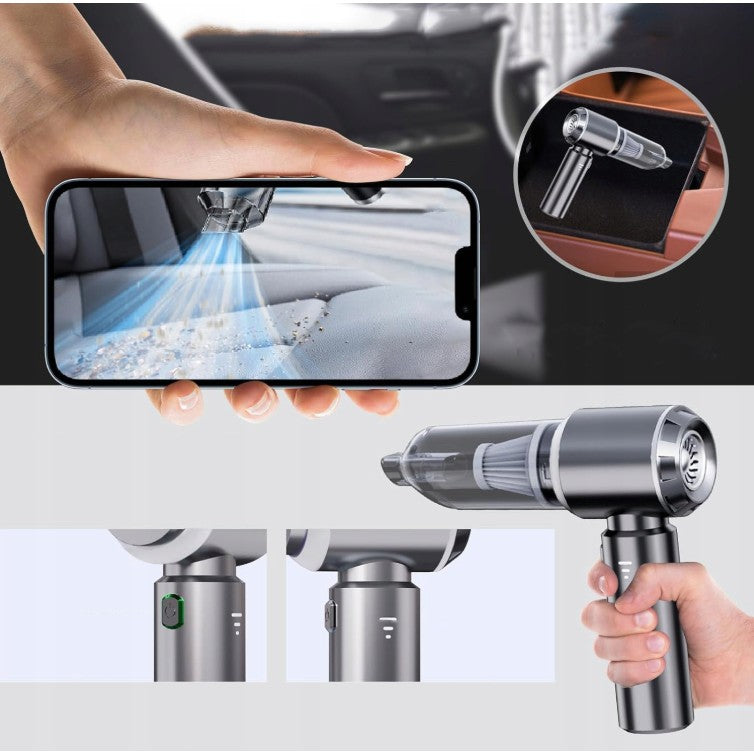 Aspirator Portabil Auto, Kadeny, pentru Casa si Masina, 3 Viteze, Incarcator Tip-C cu Incarcare Rapida, Tub Prelungitor, 2000mAh, 7 Capete de Aspirare si Suflare, 21x20x6.5 cm, Negru