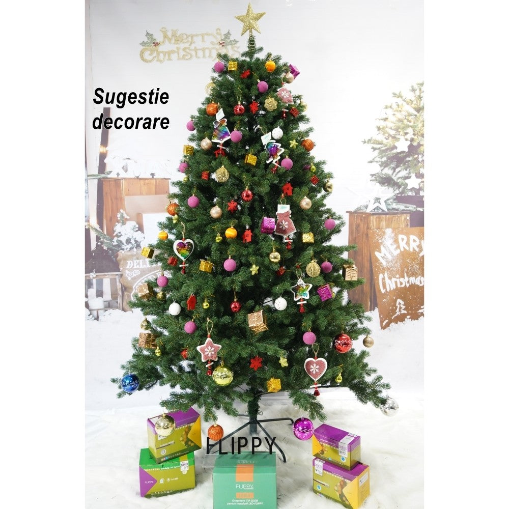 Brad artificial de Craciun, clasic, pentru interior/exterior, inaltime 210 cm, diametru 138 cm, 858 ramuri, Kadeny, verde, suport metalic inclus