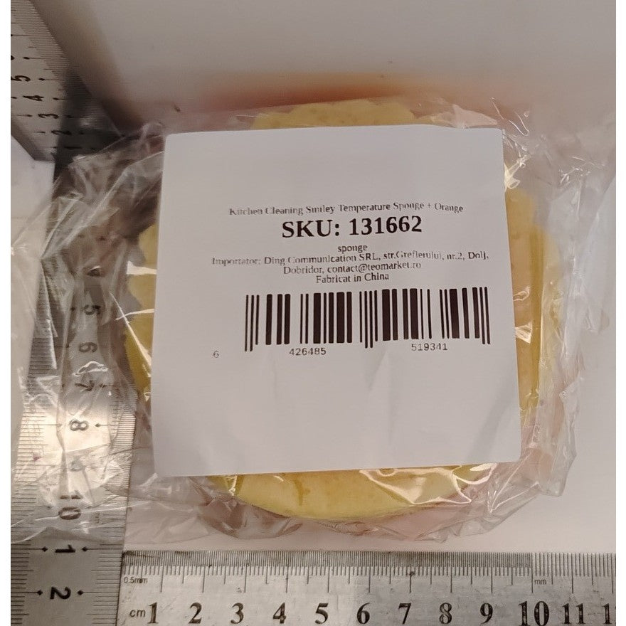 Burete de Vase, Kadeny, Rotund, din Burete PU, Model Smiley Face, Doua Fete, 10 x 4 cm, Portocaliu/Galben