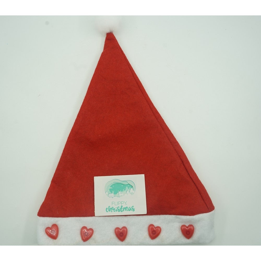 Caciulita de Mos Craciun,Kadeny, cu inimi si led, rosie, marime universala, poliester