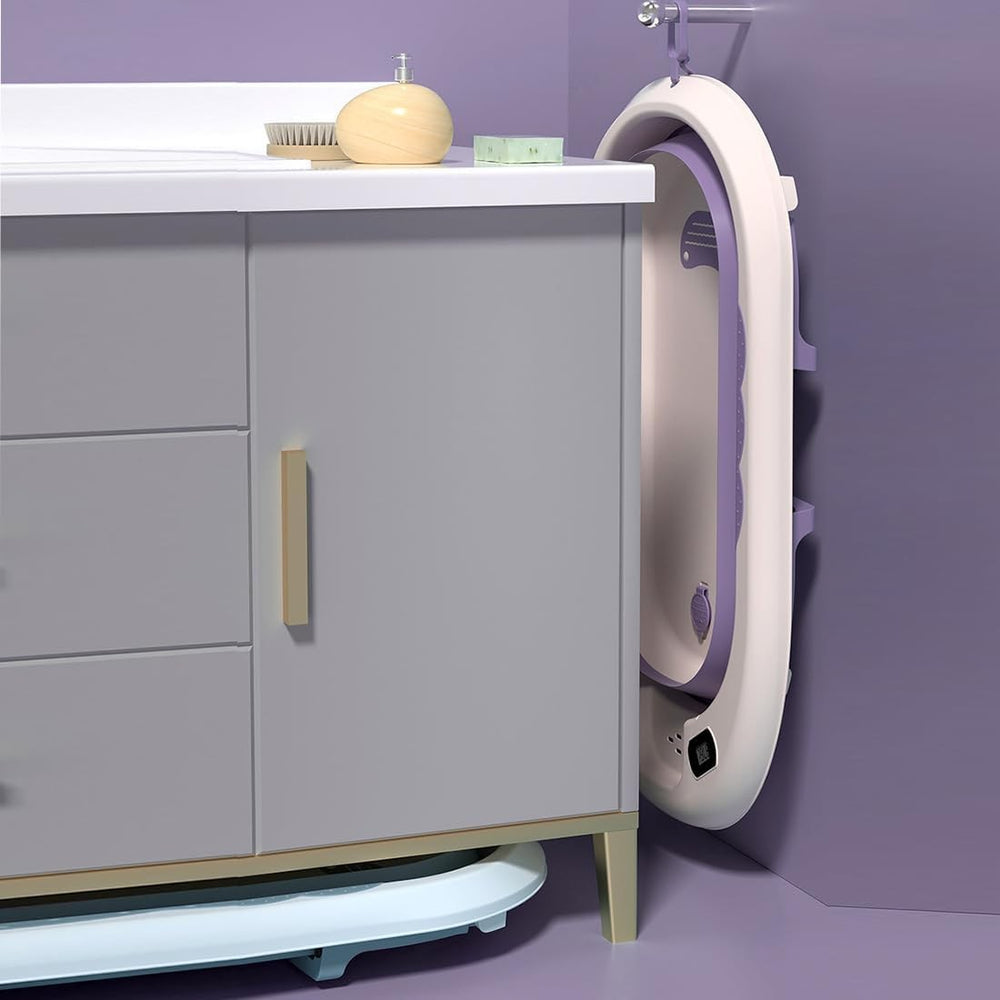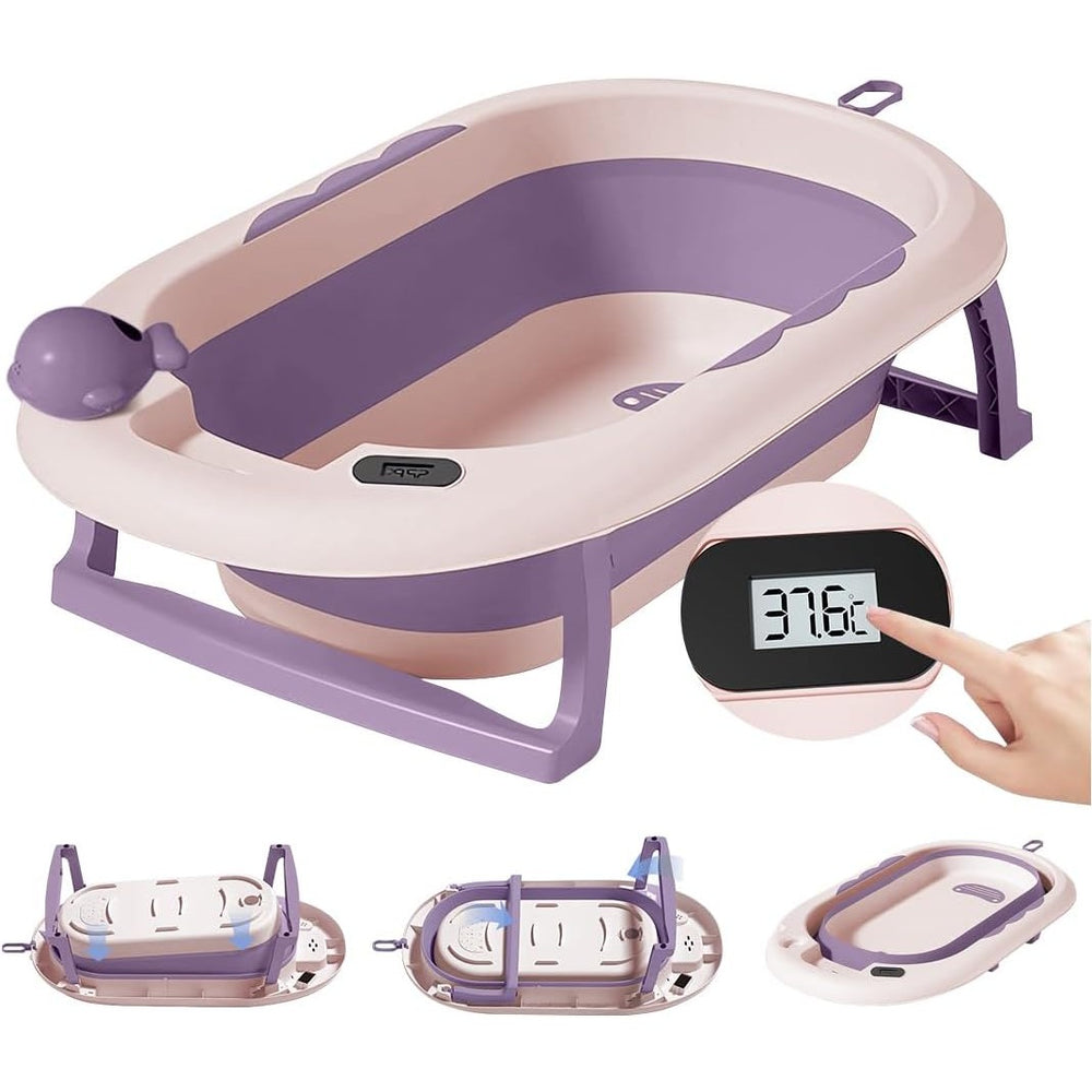 Cada de Baie, Kadeny, pentru Copii 0 luni - 6 Ani, cu Termometru, Pliabila, Perna Suport Inclusa, din Plastic, 81.5 x 49 x 21.5 cm, Mov
