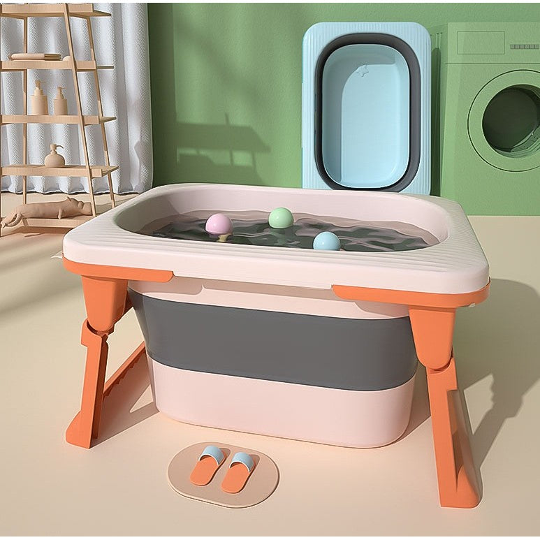 Cada Pliabila pentru Baie, Kadeny, din PP+TPE, pentru Copii 0-6 Ani, cu Picioare, Suport de Sezut, Scurgere Etans, 80 x 52 x 42 cm, Portocaliu