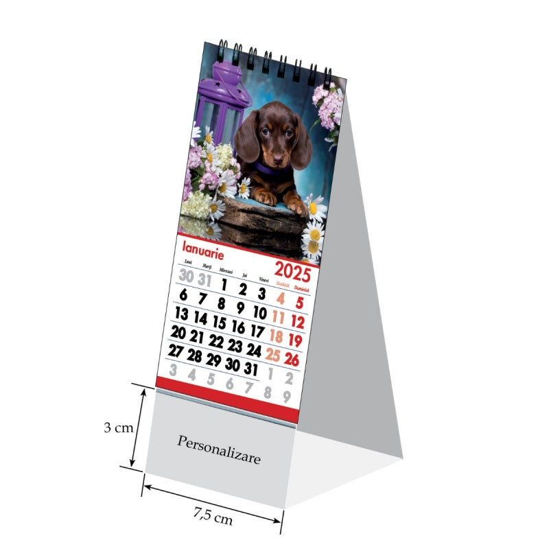 Calendar de birou Unicart mini Caini si Pisici, 7.5x15cm + 3cm pentru personalizare, cu spira