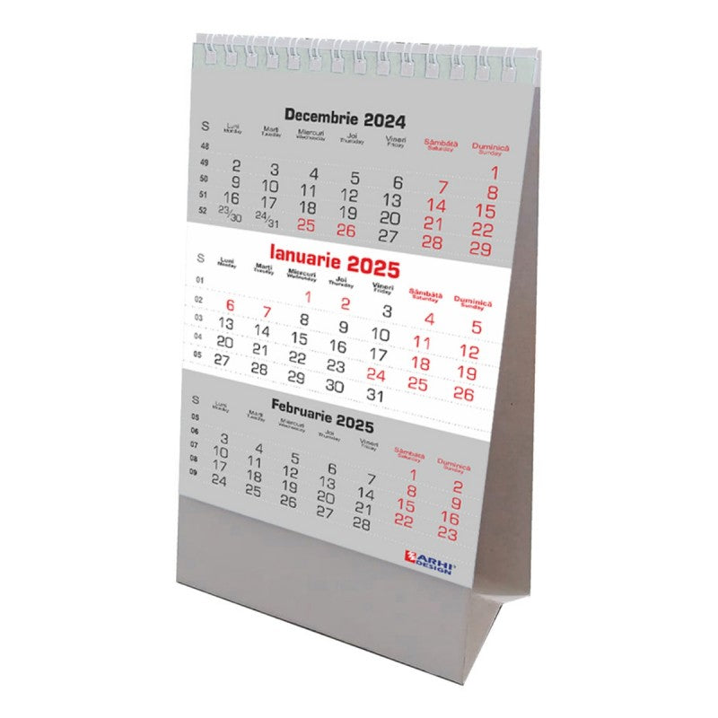 Calendar de birou ARHI, triptic de lux, 6coli, 170g coala, 135x220mm