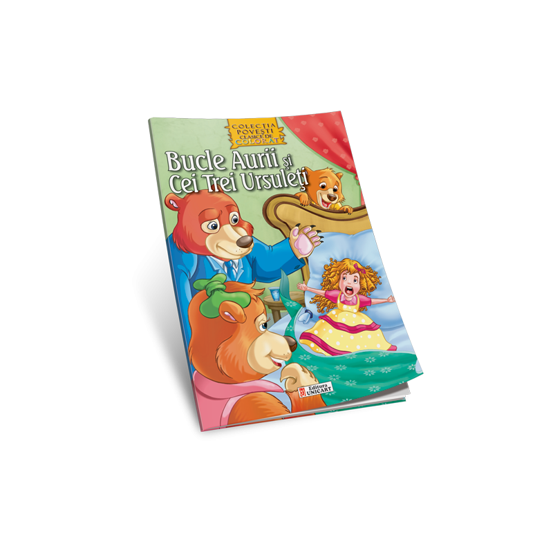 Carte de colorat A4, Cu poveste - Bucle aurii si cei 3 ursuleti, Unicart