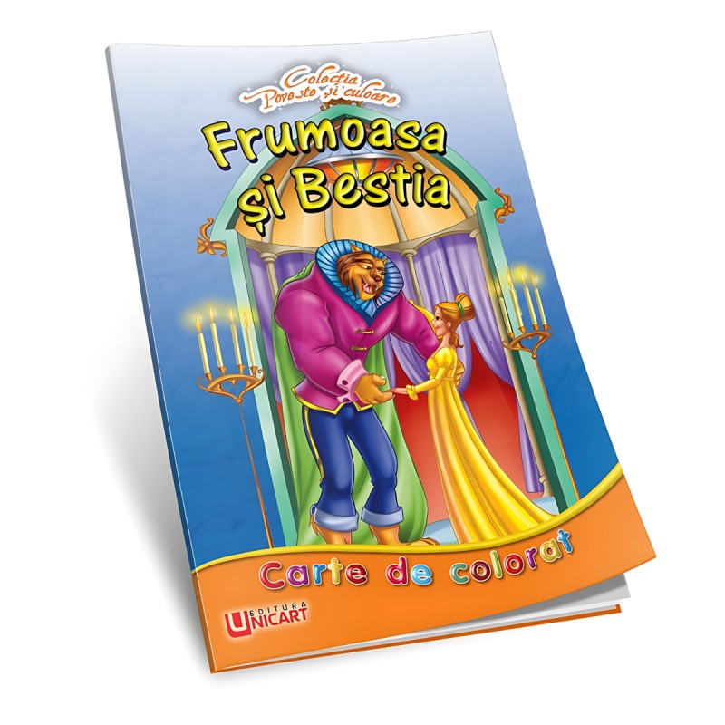 Carte de colorat A4, Cu poveste - Frumoasa si Bestia, Unicart