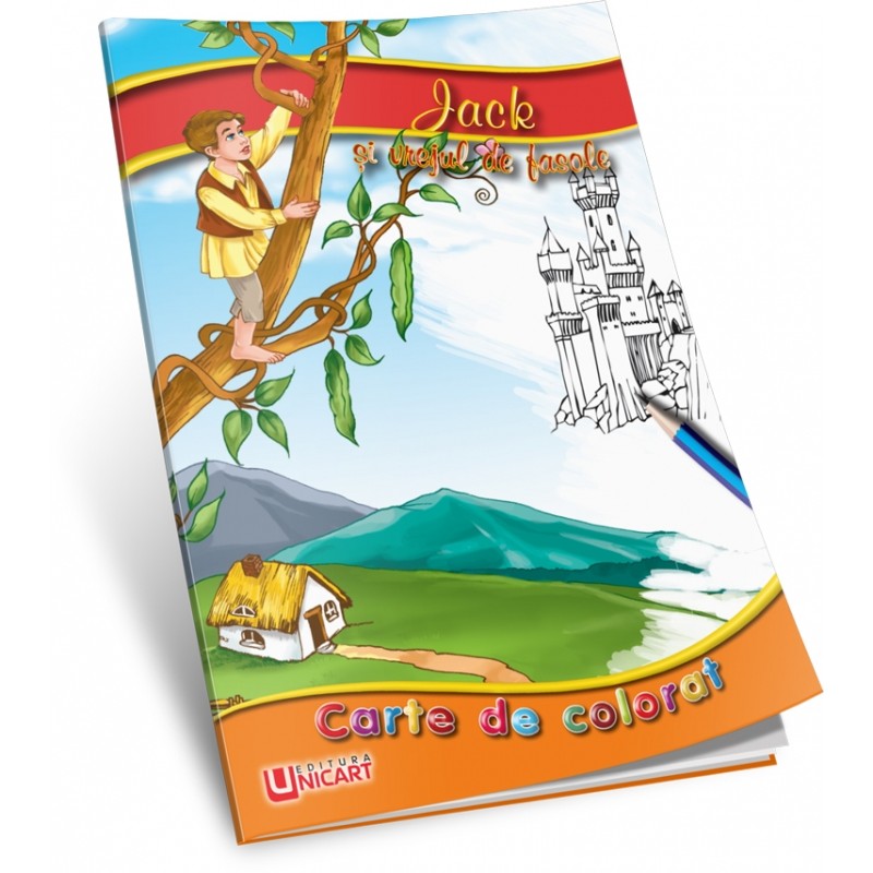 Carte de colorat A5, Cu poveste - Jack si Vrejul de Fasole, Unicart