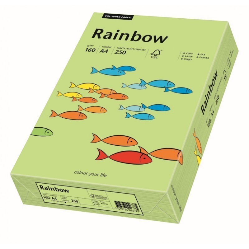 Carton colorat A4 Rainbow 88042593, 160g/mp, verde deschis, top 250 coli