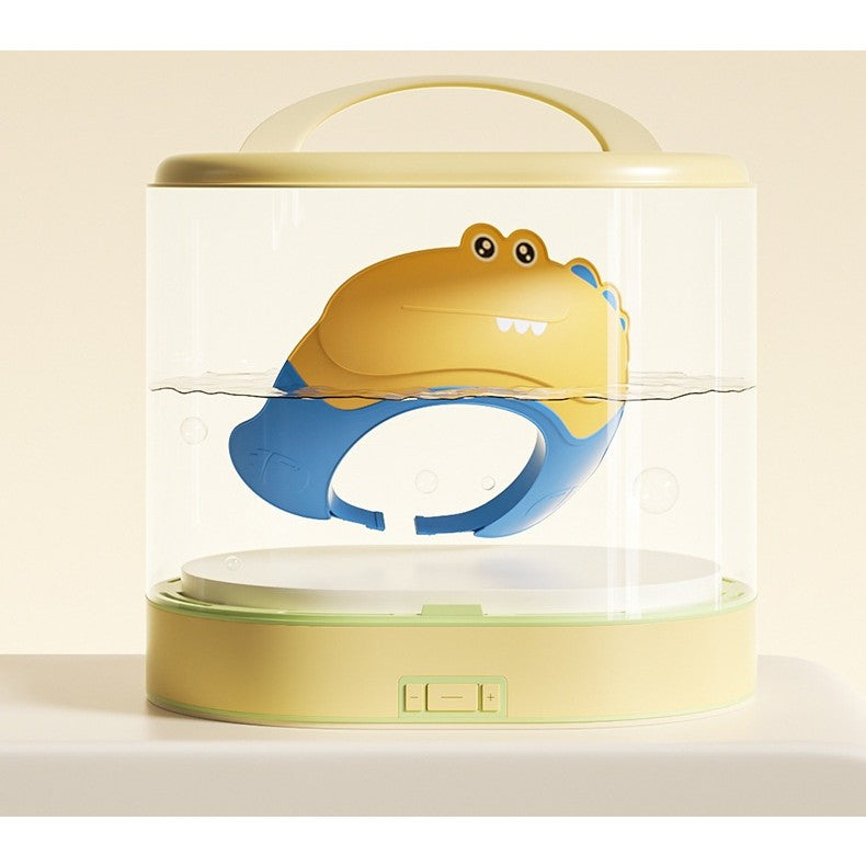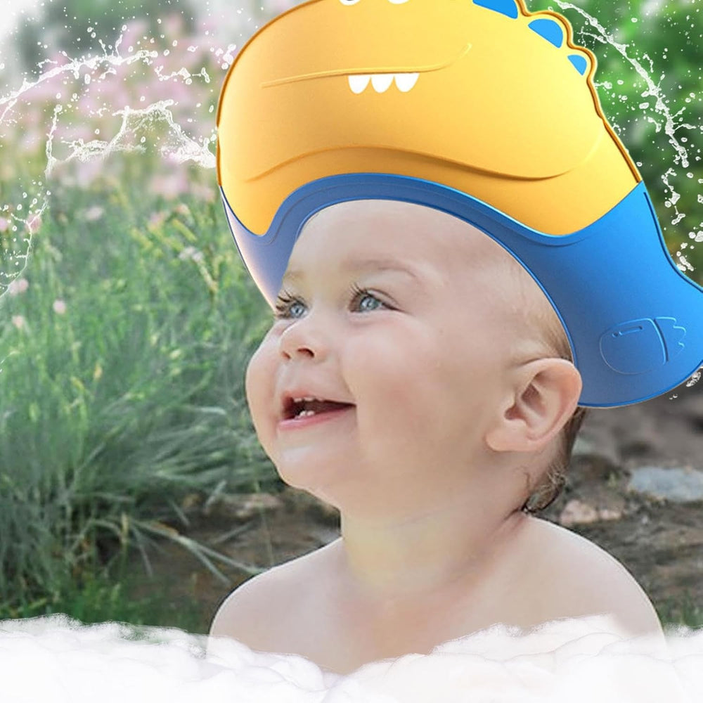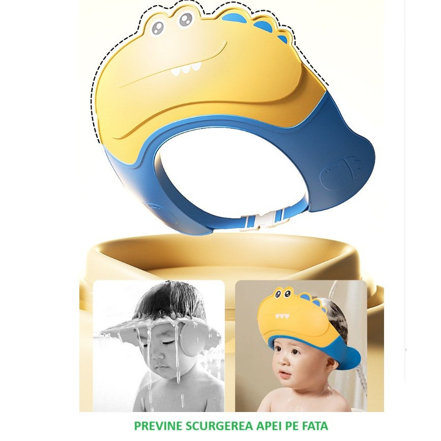 Casca de Dus, Kadeny, Previne Scurgerea Apei si Samponului pe Fata, 0-12 Ani, Ajustabila, din TPE+PP, 20 x 23 cm, Model Crocodil, Galben/Albastru