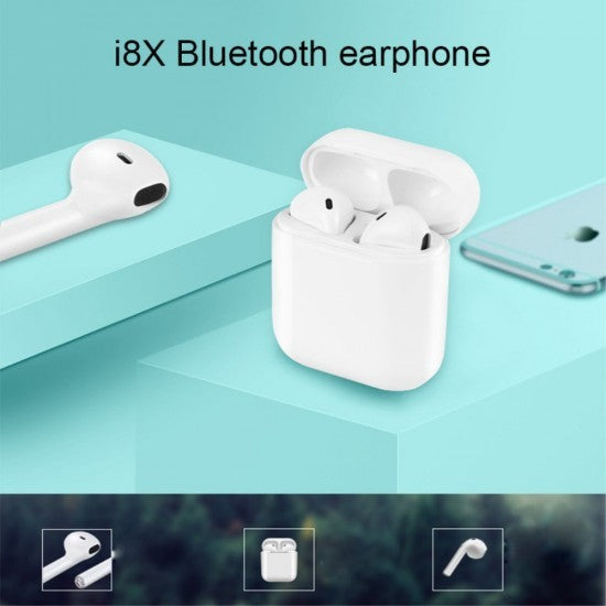 Casti Wireless Bluetooth MKJ-I8X Earbuds Kadeny, Alb