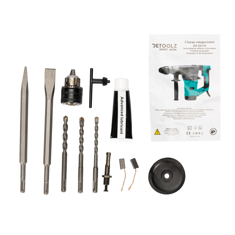 Continut colet ciocanul rotopercutor 1500W, Detoolz DZ-SE118