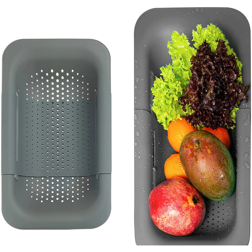 Coș de Scurgere pentru Chiuveta de Bucătărie, Flippy, Plastic, Telescopic, 36x20x5 cm, Gri