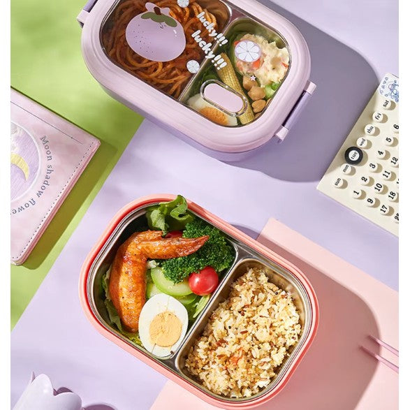 Cutie pentru Pranz sau Gustari, Kadeny, cu Doua Compartimente, pentru Copii si Adulti, Etansare, PP, Perfect pentru Scoala si Birou, 1000 mL, 22.5x14.5x8 cm, Roz