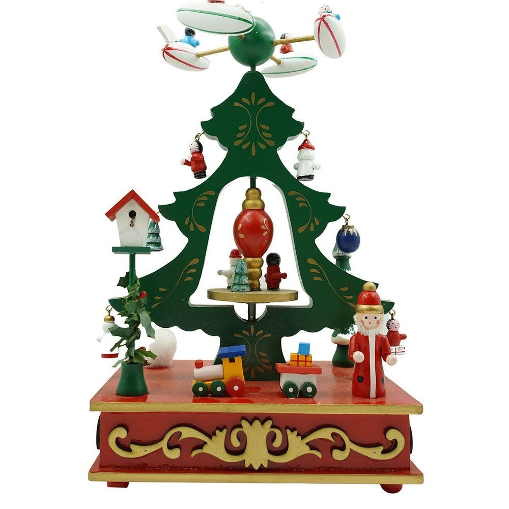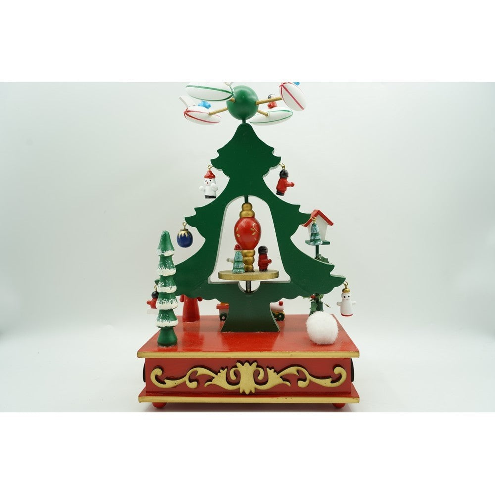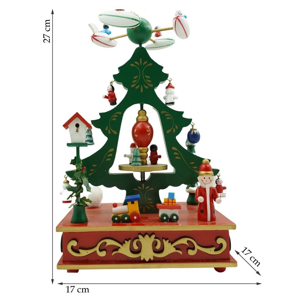 Cutiuta muzicala decorata de Craciun, Brad, Verde, din Lemn, 17 cm x 27 cm, Interior, Kadeny