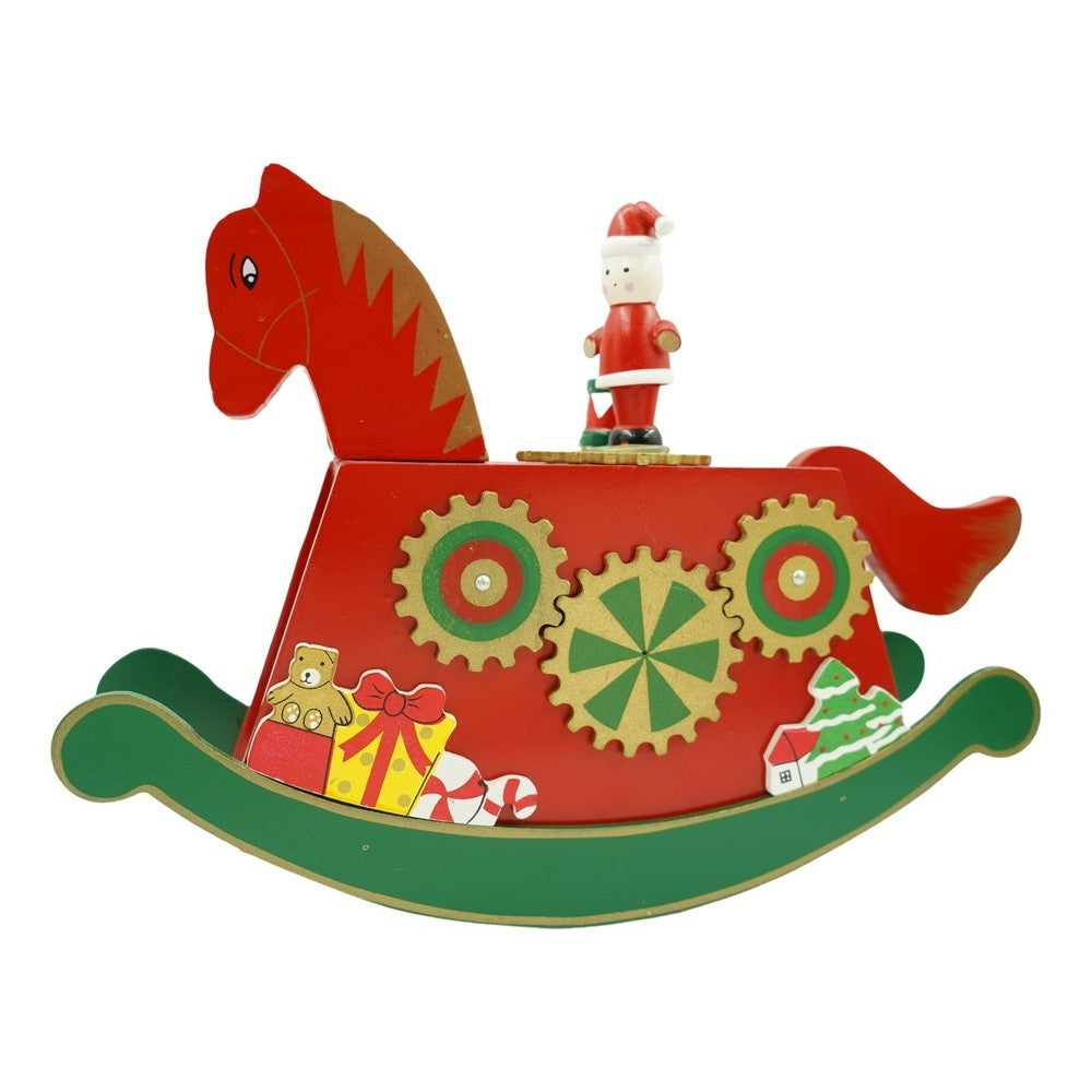 Cutiuta muzicala decorata de Craciun, Ponei, Rosu, din Lemn, 18 cm x 25 cm, Interior, Kadeny
