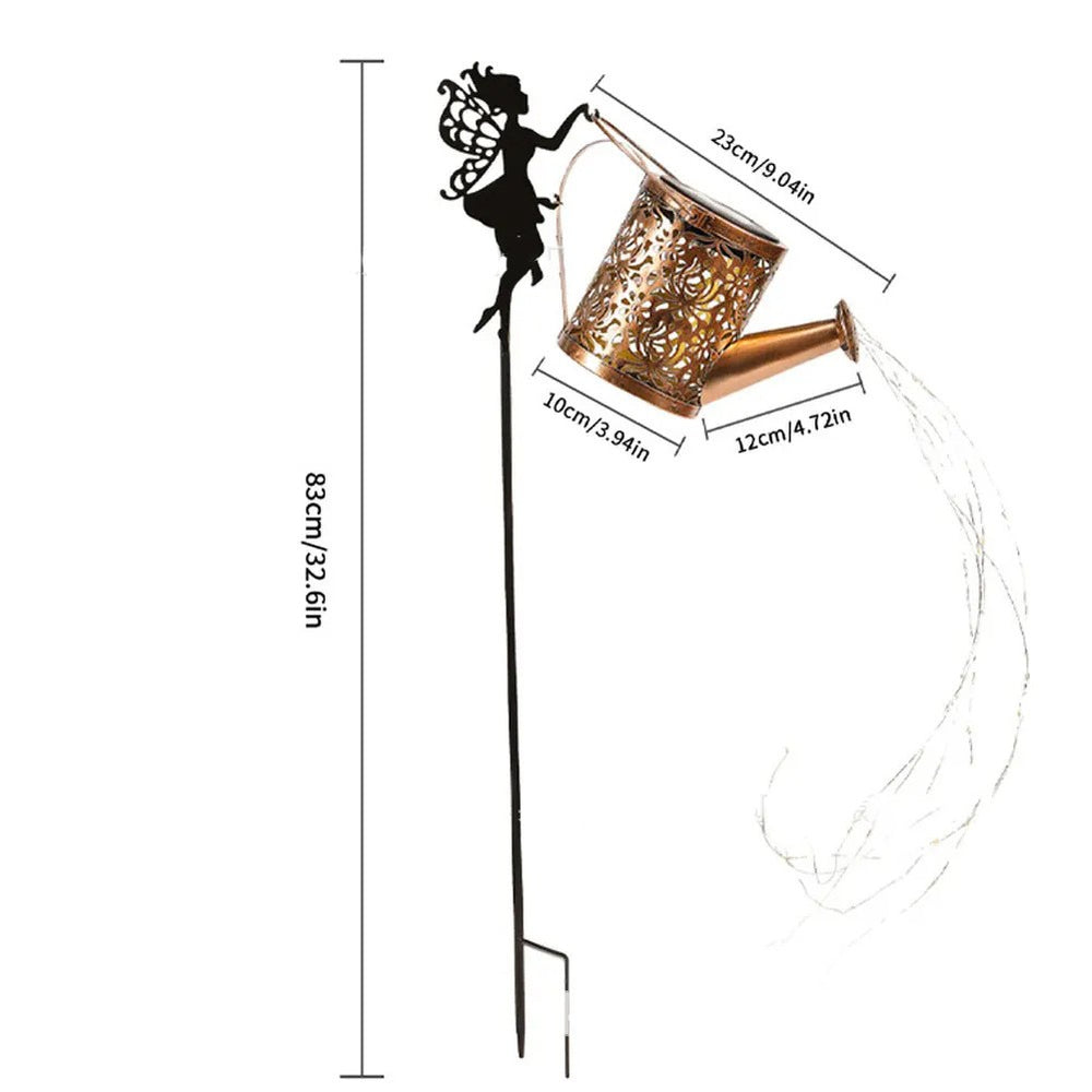 Transforma gradina ta intr-un colt de poveste cu aceasta decoratiune solara in forma de stropitoare luminata, insotita de silueta unei zane elegante. Efectul de “apa” luminata este creat de siraguri de LED-uri calde, care imita perfect o cascada stralucitoare.