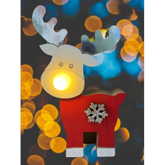 Decoratiune Craciun cu lumina, Ren, lumina alb-cald, 16 cm, Rosu, Model 1