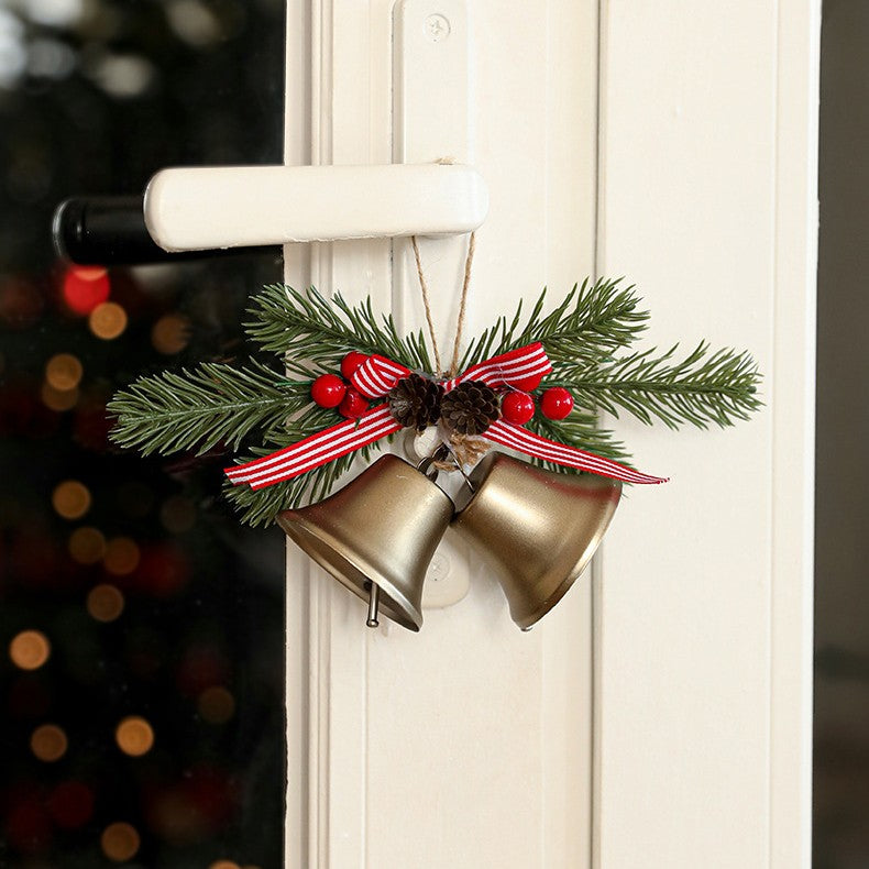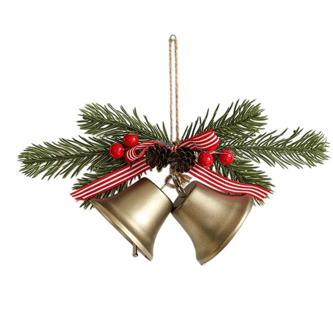 Aceasta decoratiune este realizata din materiale de calitate, cu un design rafinat ce include 2 clopotei aurii de Craciun, completati de o crenguta de brad artificiala, conuri si bobite decorative. Fundita textila adauga un accent clasic si elegant, transformand aceasta piesa intr-un element decorativ deosebit pentru brad, usi, ferestre sau orice colt al casei.
