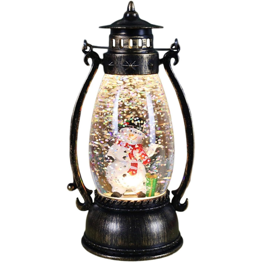 Decorațiune Luminoasă Flippy, Felinar de Crăciun cu LED, Model Lampă cu Ulei, Om de Zapada, cu Mâner, 14 x 7 x 6 cm, Negru