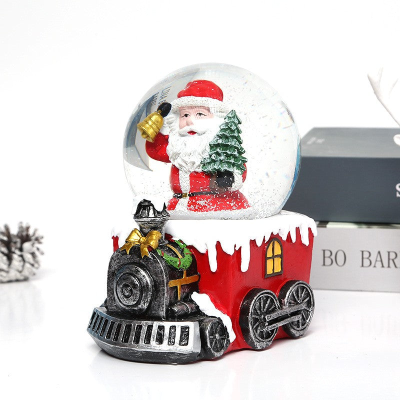 Decoratiune muzicala glob cu zapada, Mos Craciun pe tren, 9 x 10 cm, multicolor
