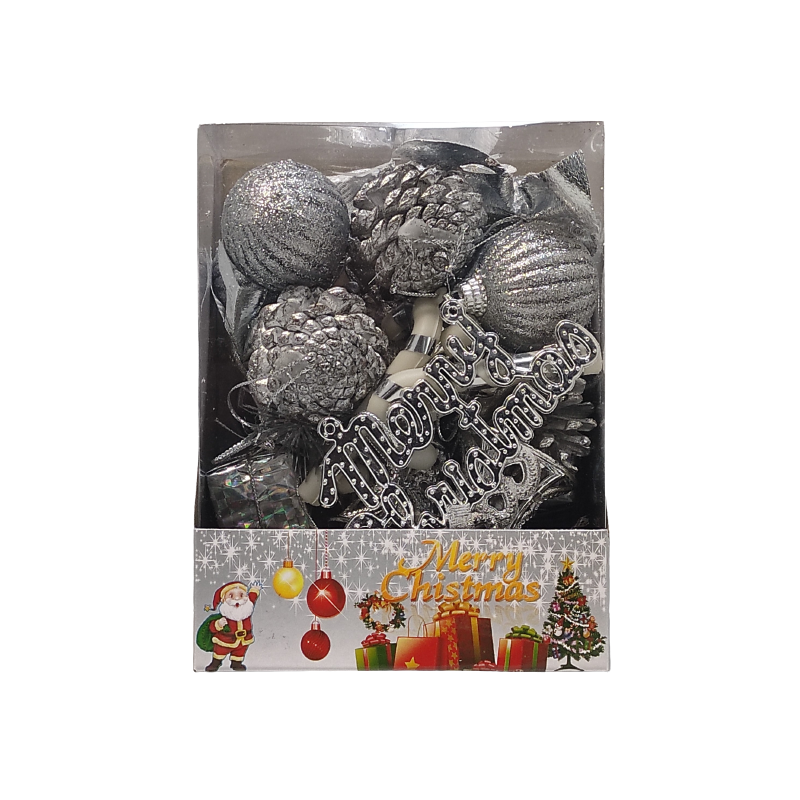 Decoratiuni Craciun CNX AD22054, globuri si diverse figurine, argintiu, set 30 buc