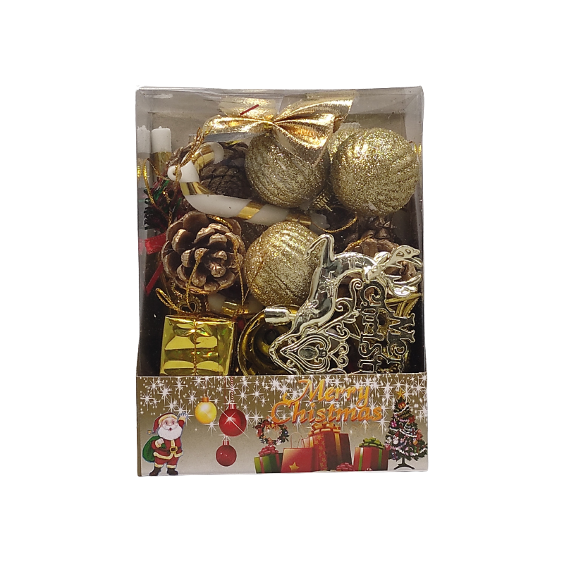 Decoratiune Craciun CNX, globuri si div. figurine, aurie, AD22054, 30 bucati/set
