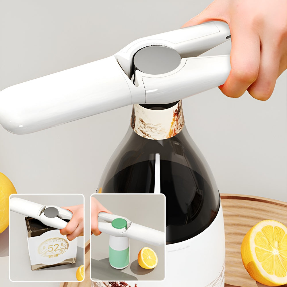 Dispozitivul nostru are inclus: un deschizator de sticle, un curățător de legume/fructe , care poate de asemenea să le felieze și doua lame la capăt cu ajutorul cărora se pot deschide conservele.
