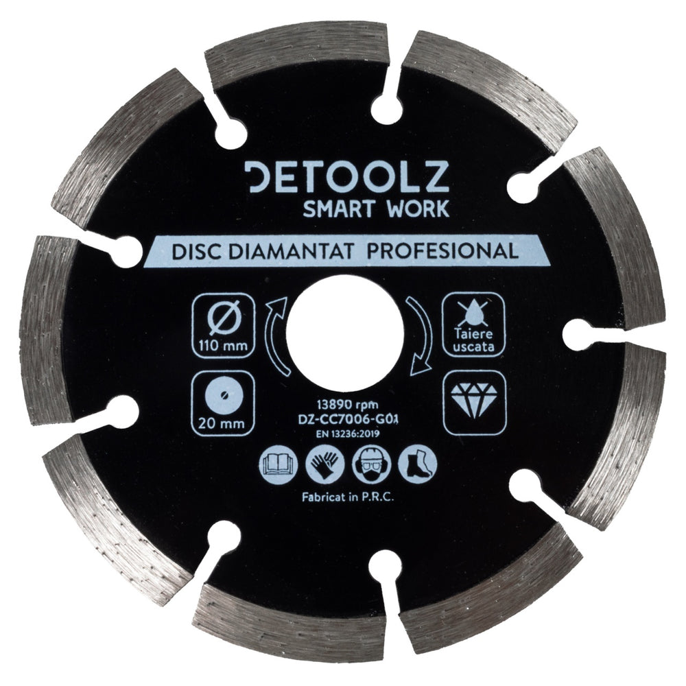 Disc diamantat segmentat Detoolz 110x20mm, taiere uscata