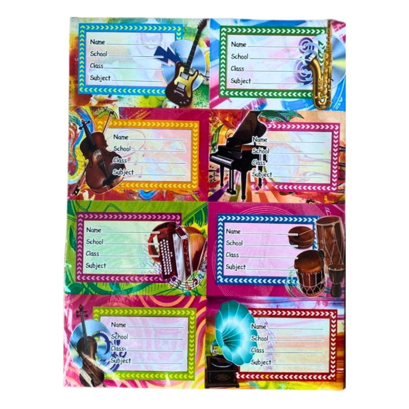 Etichete Scolare, 8/Coala, Model Instrumente Muzicale, 10 Coli/Set - Etichete Autoadezive Distractive pentru Personalizarea Materialelor Scolare