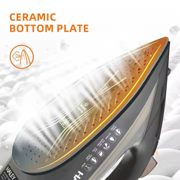 Realizat dintr-o combinatie de polipropilena (PP) si otel inoxidabil, fierul de calcat HALEY HY-2045 este rezistent si usor de manevrat. Talpa ceramica asigura o alunecare lina pe materiale si previne lipirea, protejand astfel hainele impotriva arsurilor.
