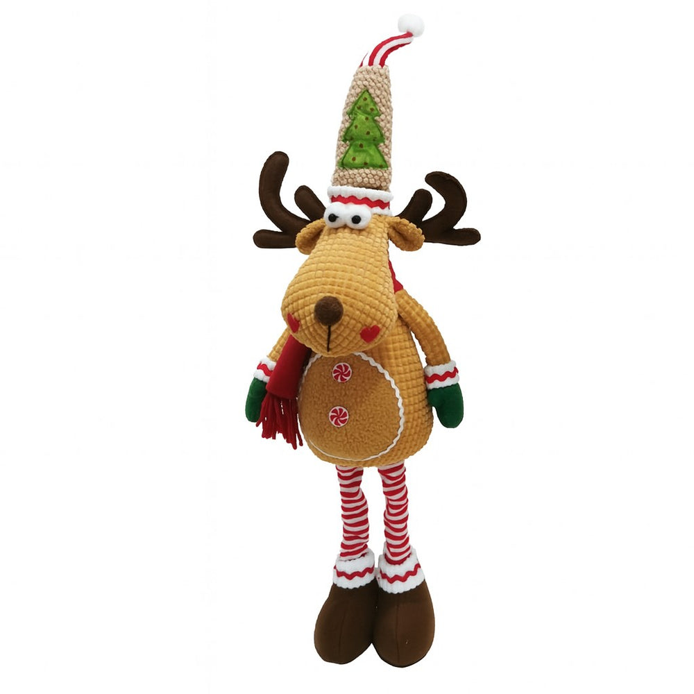Figurina decorativa Craciun – Ren textil cu picioare extensibile, 63 x 20 x 8 cm