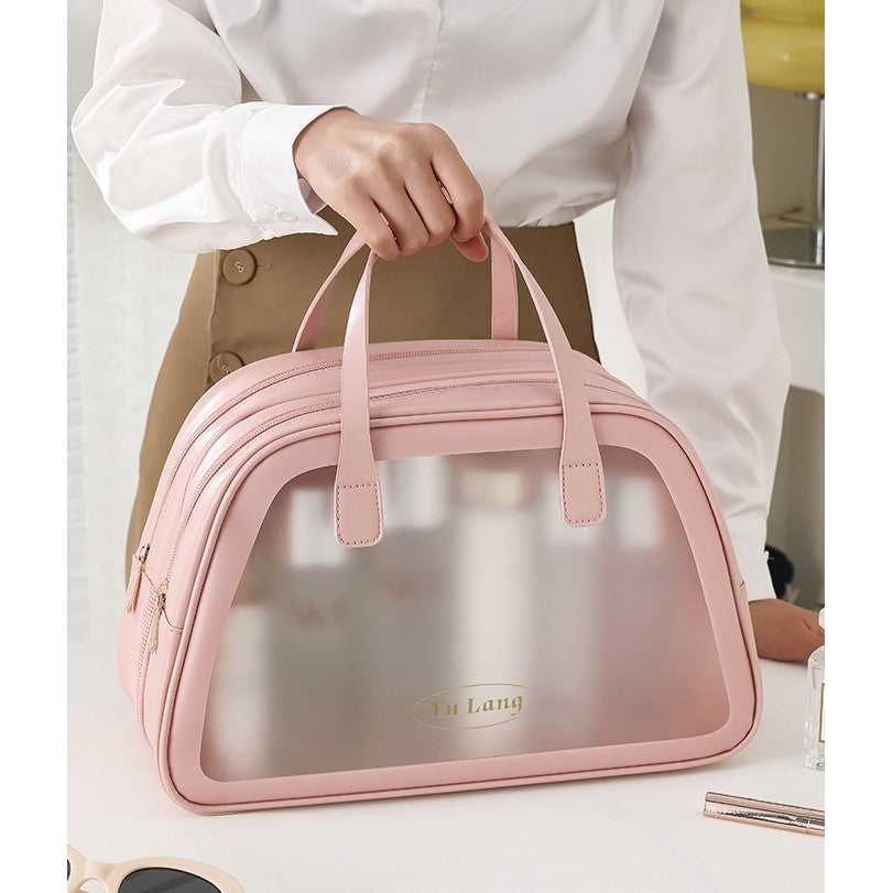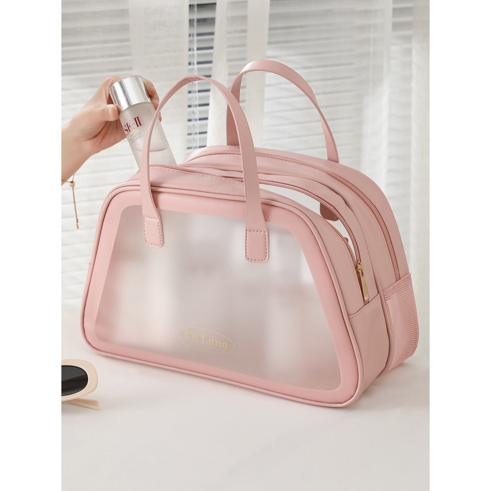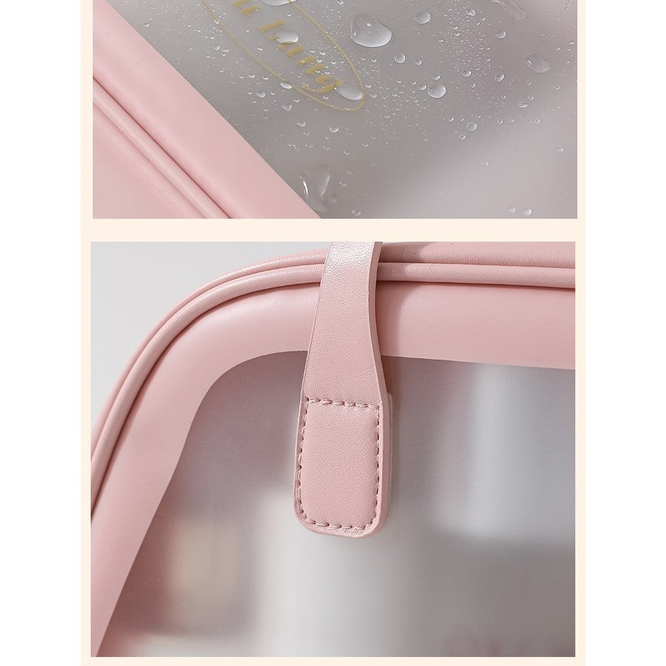 Geanta Cosmetice de Voiaj, Flippy, Dubla Compartimentare, Impermeabila, Translucida Mata, 35 x 22 x 15 cm, Roz