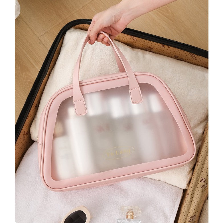 Material Durabil: Geanta este realizată din PVC rezistent, care nu doar că oferă durabilitate, dar și rezistență la apă. Acest lucru asigură că produsele dvs. de toaletă și cosmetice sunt protejate în timpul călătoriilor.