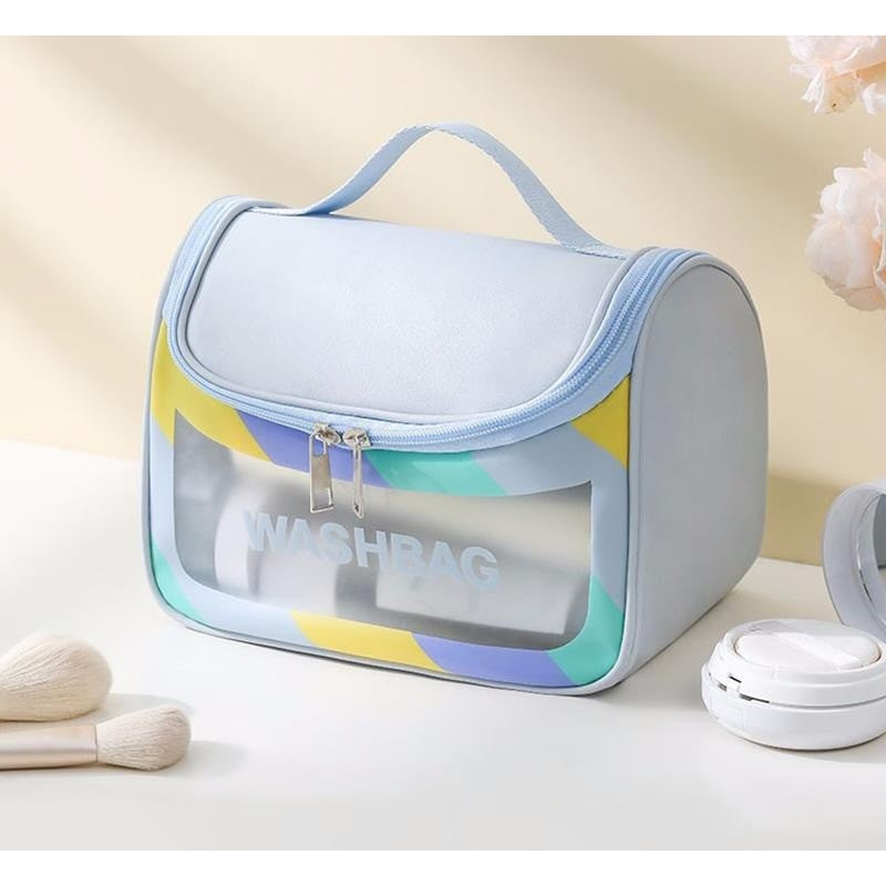 Material Durabil: Geanta este realizată din PVC rezistent, care nu doar că oferă durabilitate, dar și rezistență la apă. Acest lucru asigură că produsele dvs. de toaletă și cosmetice sunt protejate în timpul călătoriilor.