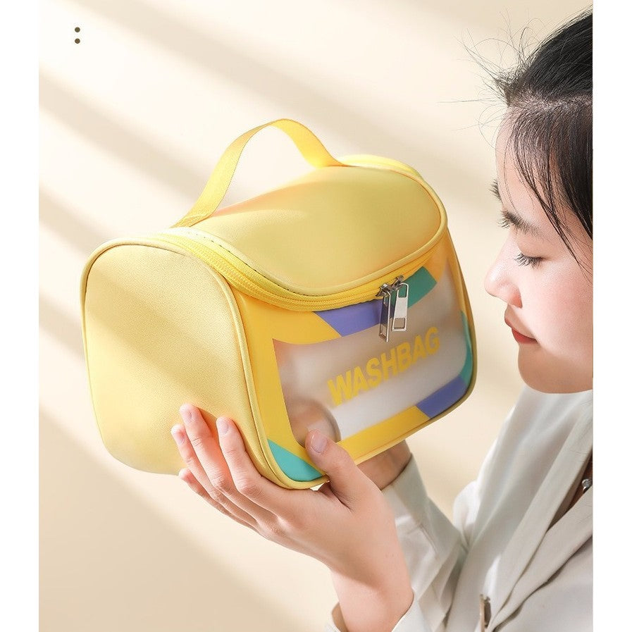 Geanta Cosmetice de Voiaj Flippy, Impermeabilă, Translucidă Mată, 22 x 16 x 14 cm, Galben
