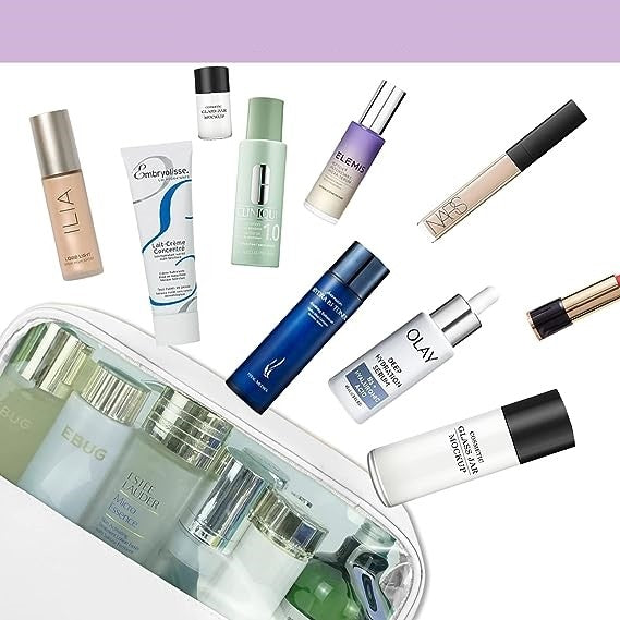 Geanta cosmetice Kadeny, pentru voiaj sau organizare, material PVC/textil, impermeabila, portabila, 26 x 15 x 10 cm, alb