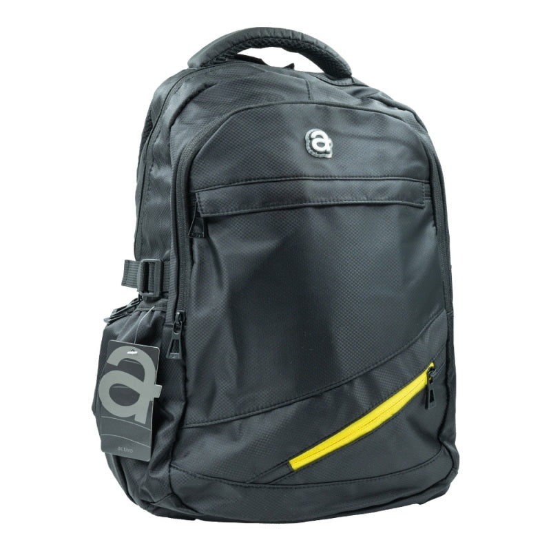 Ghiozdan CNX, 3 compartiment, textil, negru cu fermoar galben, JM326
