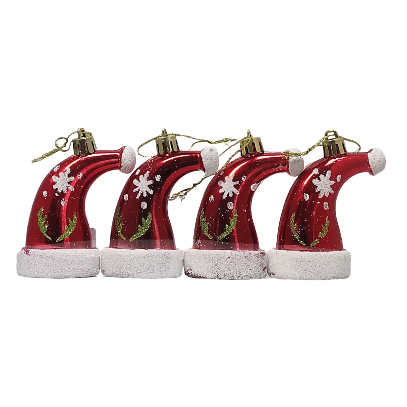 Globuri brad Craciun CNX 9270-10, caciulita, PVC, rosu, set 4 buc
