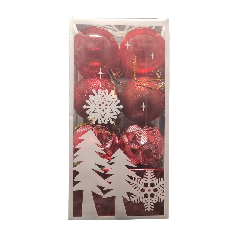 Globuri brad Craciun, rosu sidefat, 55-60mm, set 12 buc