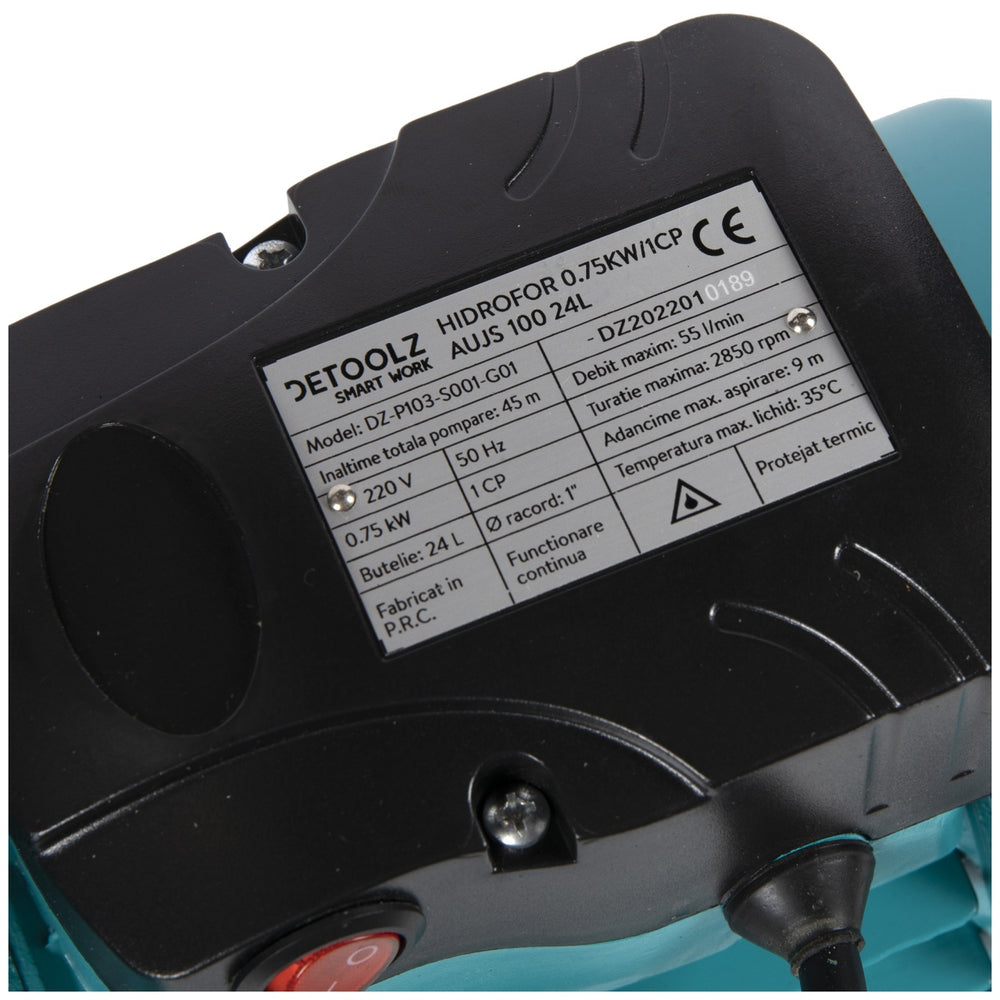 Hidrofor Detoolz 0.75 kW, debit 3300l/h, inaltime de pompare 45m, carcasa pompa inox, volum butelie 24 litri
