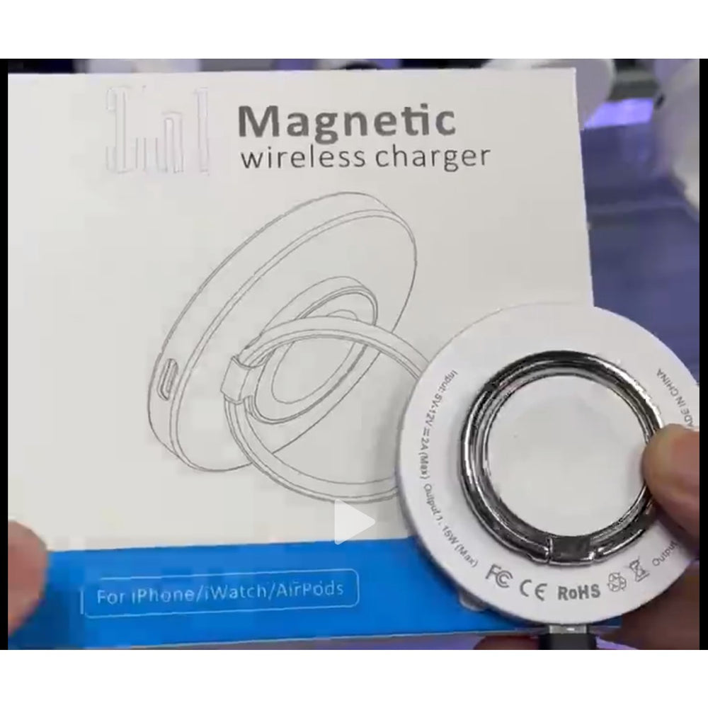 Incarcator 3 in 1  fara fir, Wireless, portabil Kadeny, MagSafe 15W, functie suport, inel rotabil 360 grade,pentru seriile iPhone 14, iPhone 13 si iPhone 12, iWatch, AirPods