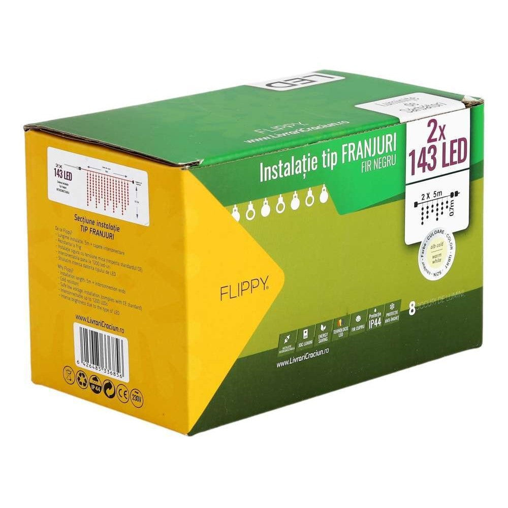 Instalatia de Craciun Flippy de tip Franjuri are 8 jocuri de lumini si se poate folosi pentru decoratiuni interioare si exterioare, fiind prevazuta cu protectie IP44( material rezistent la umezeala/ inghet si protejeaza impotriva patrunderii corpurilor straine solide cu diametru 1 mm si mai mari).