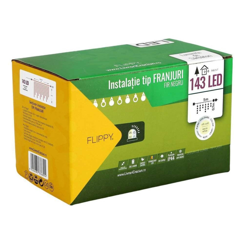 Instalatia de Craciun Flippy de tip Franjuri Flash se poate folosi pentru decoratiuni interioare si exterioare, fiind prevazuta cu protectie IP44 (material rezistent la umezeala/ inghet si protejeaza impotriva patrunderii corpurilor straine solide cu diametru 1 mm si mai mari).