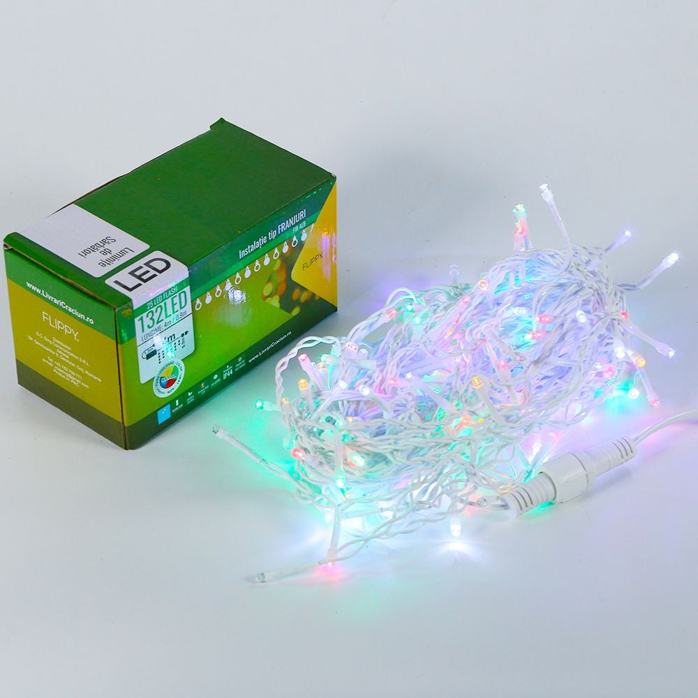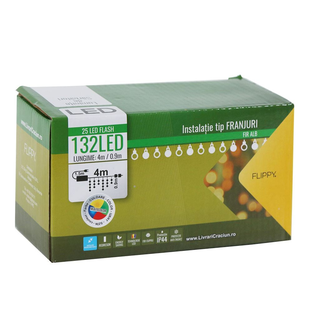 1 x Instalatie de Craciun, Premium Flippy®, Tip Franjuri cu Flash, 4 m, 132 LED-uri, Multicolor, Interconectabila