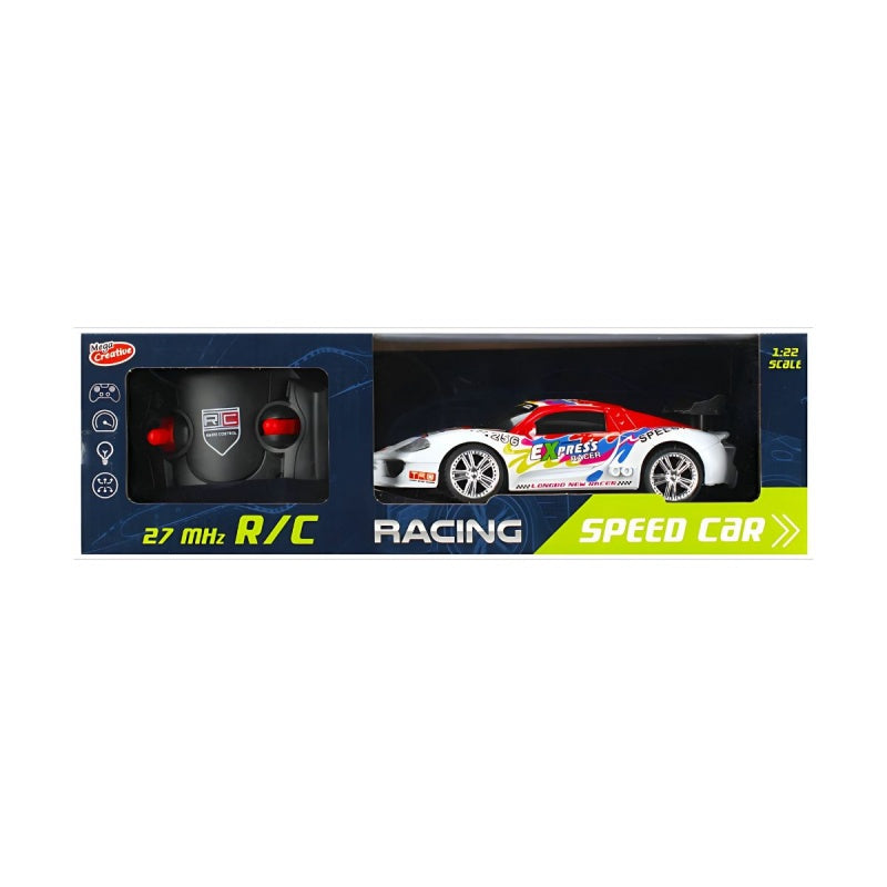 Masina cu telecomanda, poate circula in toate directiile, vine in doua variante de culoare: albastru-alb si rosu-alb.