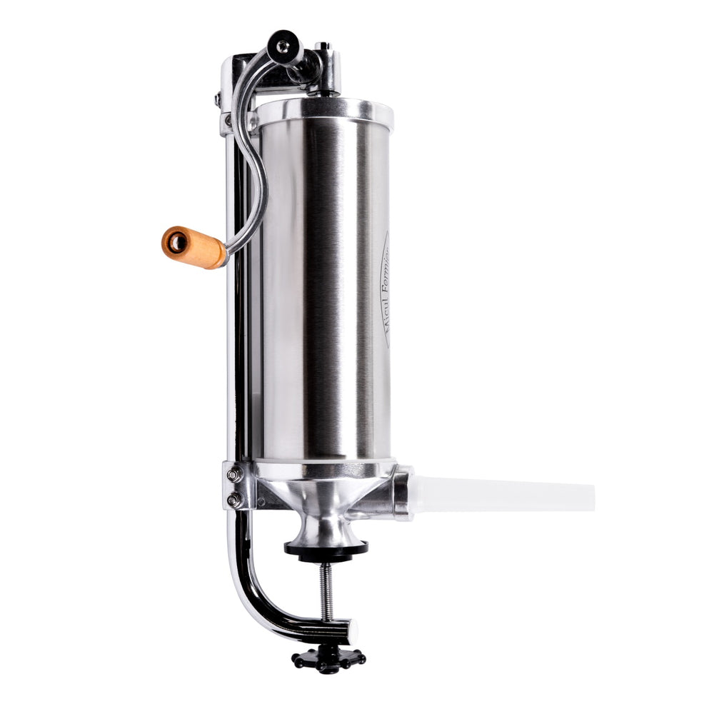Masina de carnati Micul Fermier GF-1414-S001-G02 va ofera posibilitatea sa preparati carnatii intr-un timp foarte scurt. Masina de facut carnati de 2.5 kg din aluminiu dur are un design modern, este confectionata din materiale de calitate care asigura o performanta remarcabila fiind totodata foarte usor de intretinut. Toate componentele din metal sunt construite special pentru a oferi rezista la presiunea necesara pentru a umple cei mai mici carnati. Puteti face chiar carnat proaspat de la vanat salbatic.