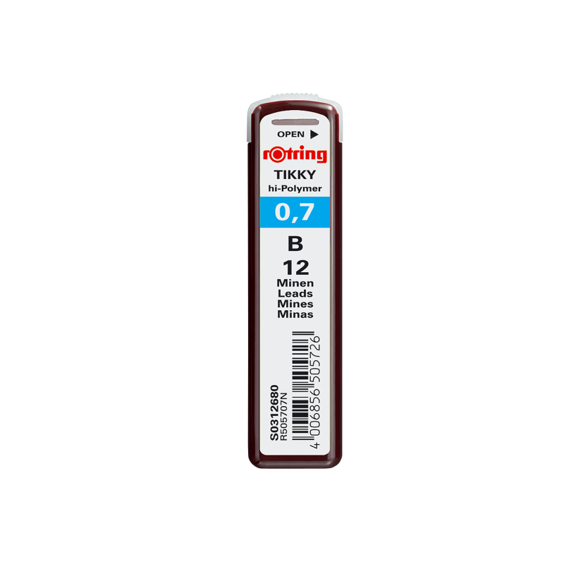 Mine creion mecanic Rotring Tikky, 0.7mm, B, set 12 buc