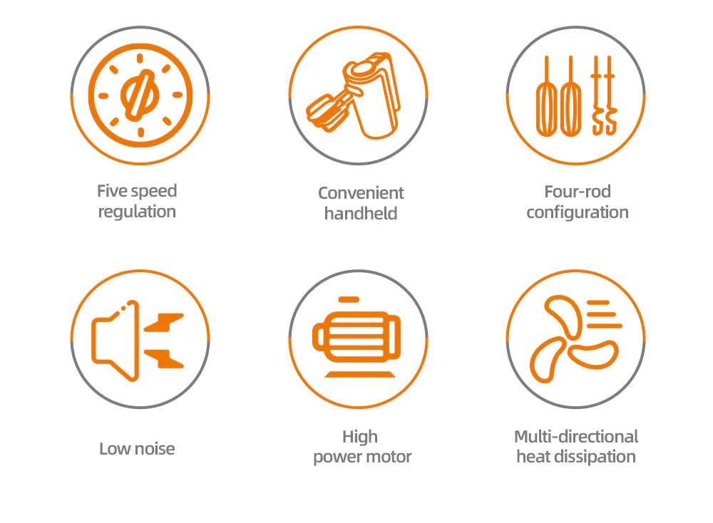 Mixerul de mana HALEY HY-1676 este alegerea ideala pentru prepararea rapida a cremelor, spumelor, compozitiilor pentru prajituri si aluaturilor usoare. Cu un motor puternic de 500W si 5 trepte de viteza, iti ofera control deplin asupra fiecarei retete, fie ca ai nevoie de o mixare delicata sau intensa.